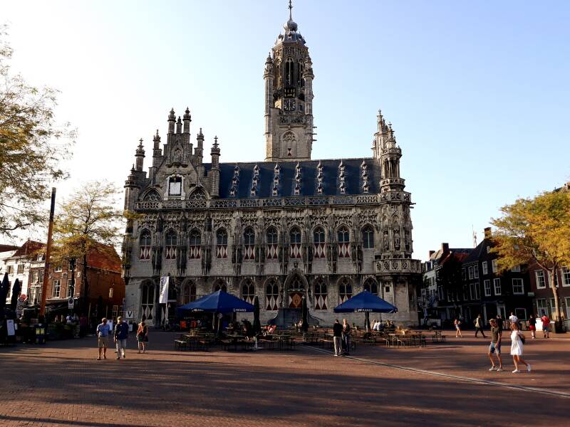 Door naar Middelburg met het dominante stadhuis. Dat maakt indruk hoor. Trouwens de hele stad.
