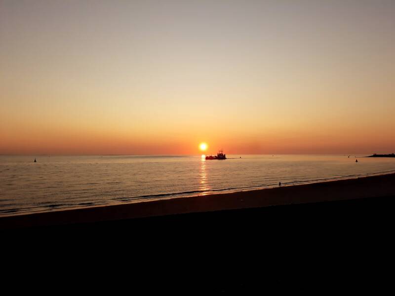 Uiteindelijk kwam ik aan in Vlissingen, waar ik als een speld in de hooiberg een hotelletje vond aan de boulevard, zodat ik de zon in al z'n pracht onder kon zien gaan, zittend in een restaurant aan zee.