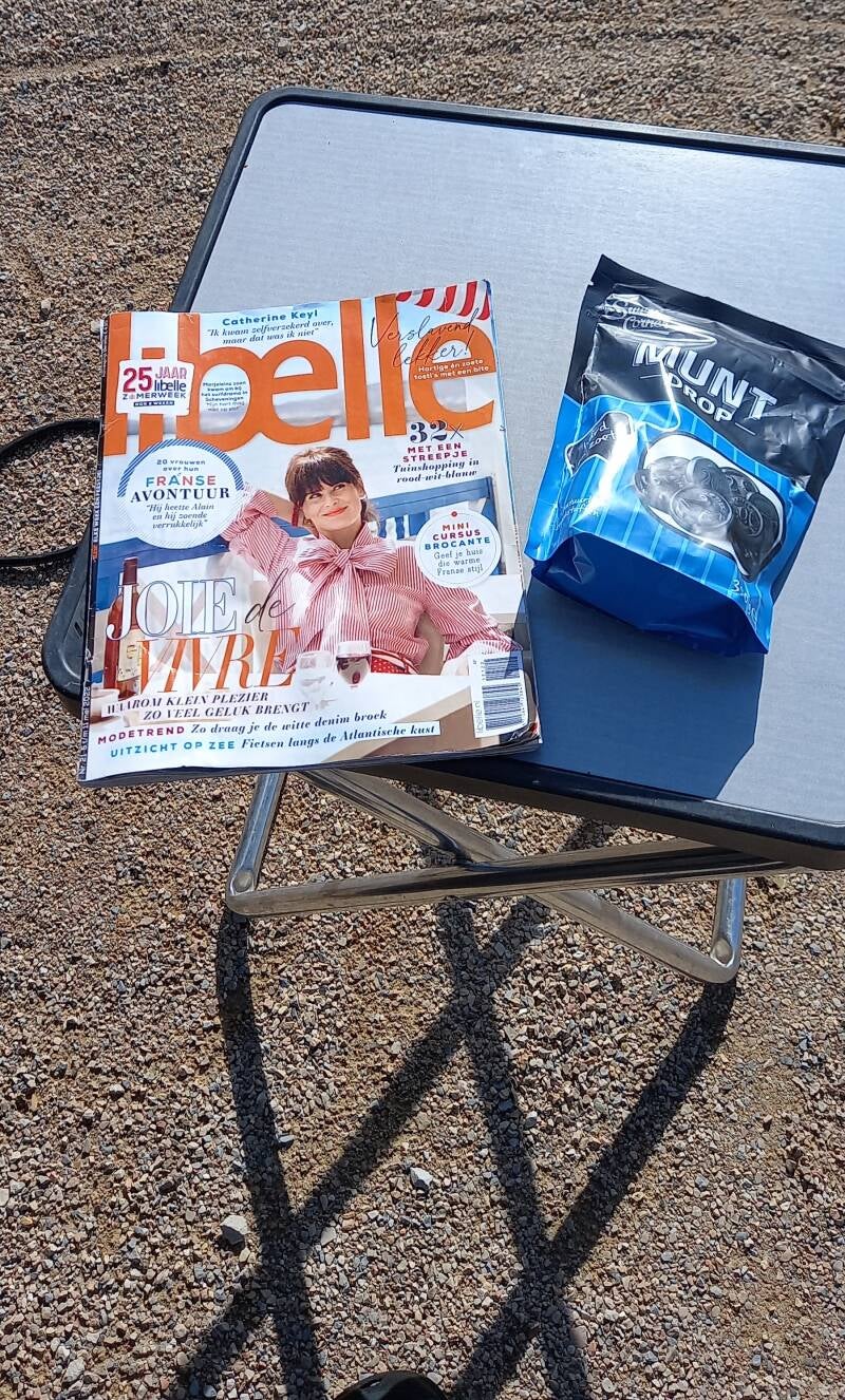 Dus ik heb uiteindelijk goed gegokt om toch te vertrekken en zit ik nu lekker in de zon met de Libelle en een zak drop.