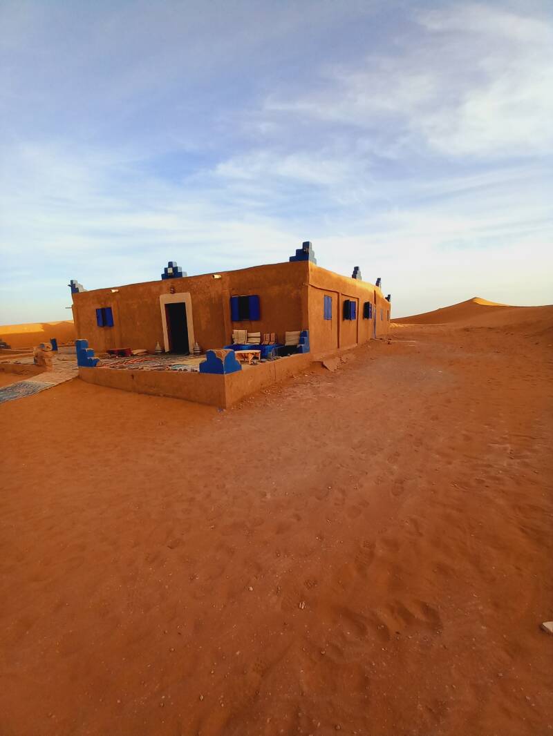 Gisteren was de laatste dag van m'n quarantaine, dus heb ik lekker van de zon in de woestijn Erg Chebbi kunnen genieten. 25 gr, dus prima uit te houden op m'n ligstoel met een boek.